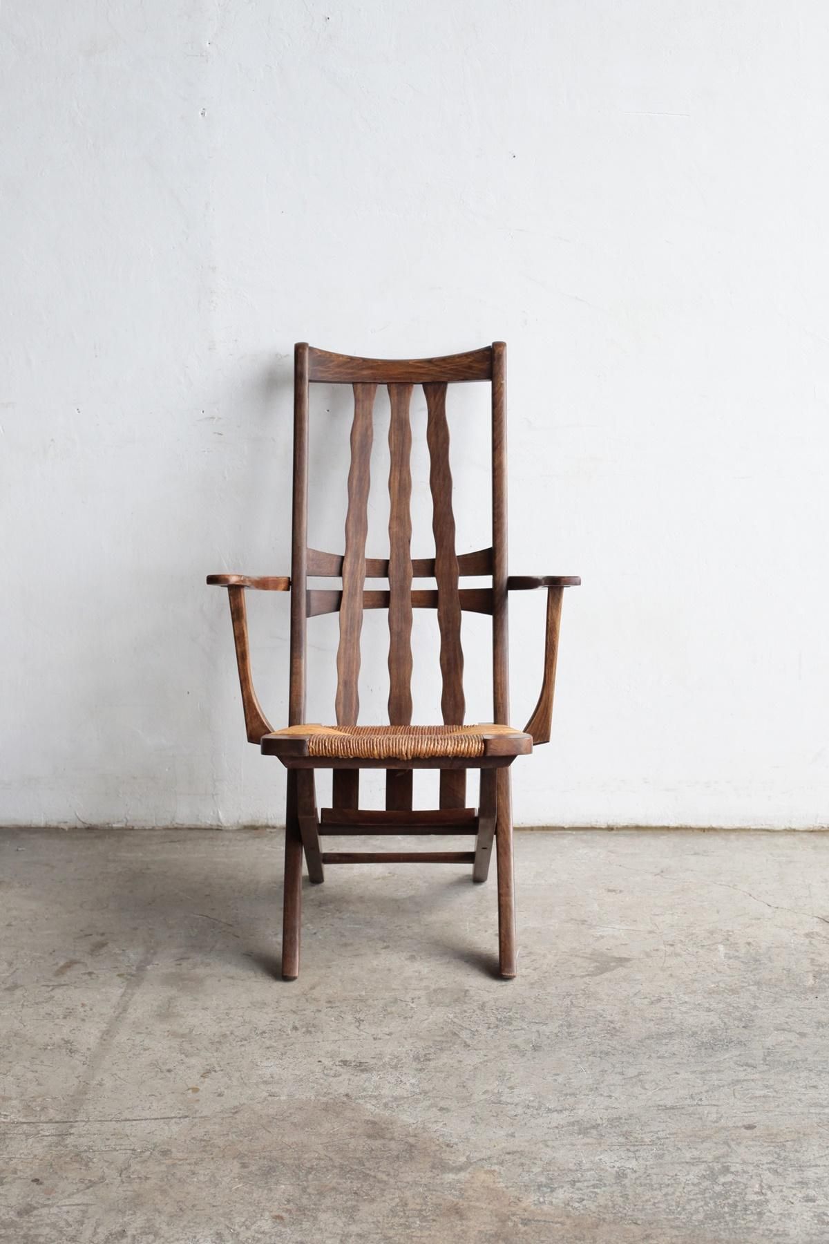 フレームはビーチ材、シートはラッシュコード。